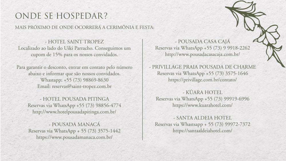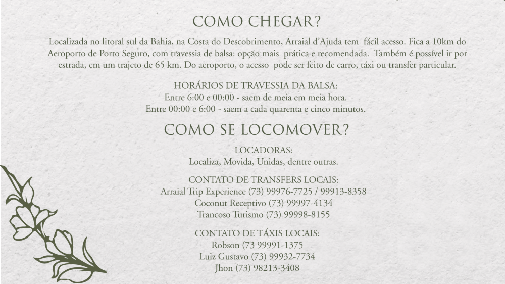Informações e dicas para que vocês cheguem com tranquilidade e aproveitem cada momento.